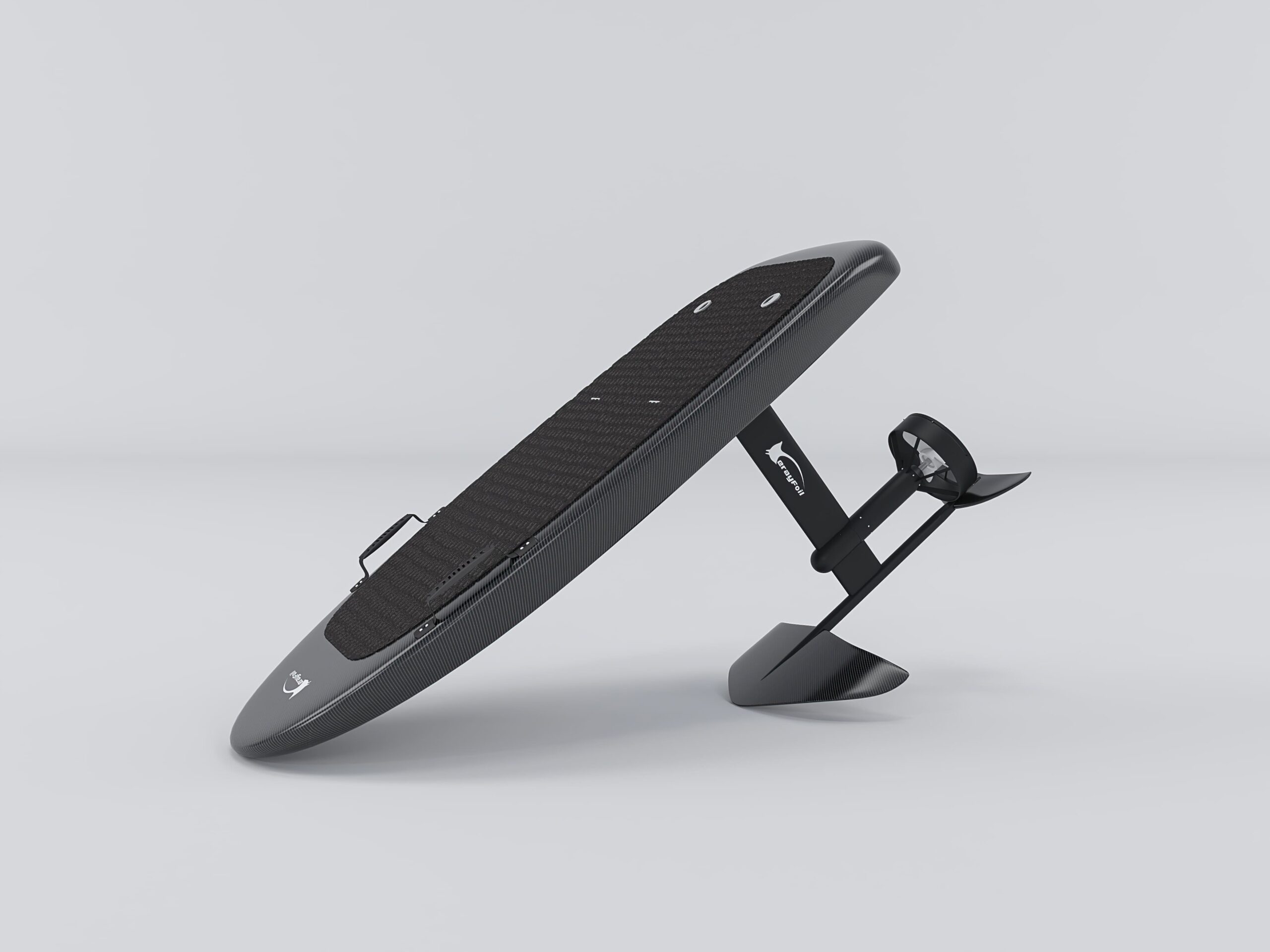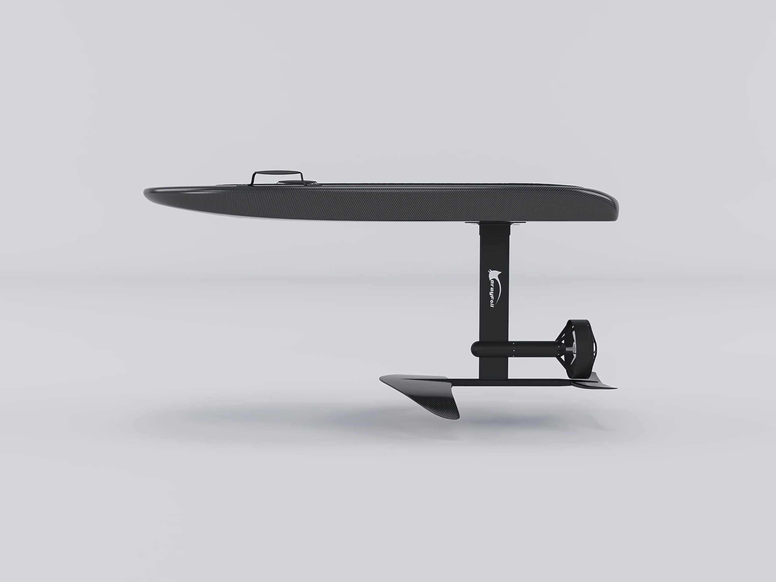 Crafted entirely from carbon fiber for minimal weight and maximum durability, our hydrofoil delivers unmatched agility. Powered by a swappable 35Ah battery, it reaches top speeds of 45 km/h with a range of up to 40 km—engineered for sustained performance and extended exploration.